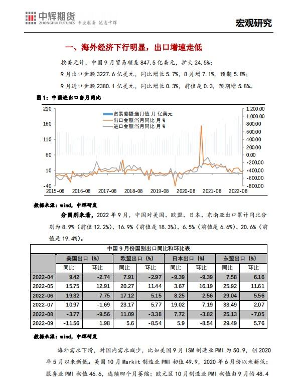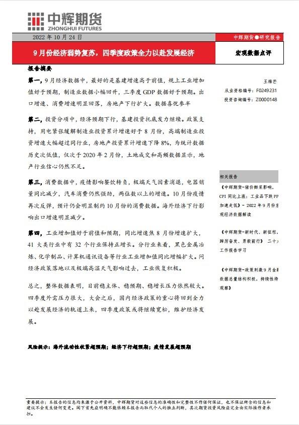 中辉期货9月份宏观数据解读,称9月份经济弱势复苏,四季度政策全力以赴发展经济。