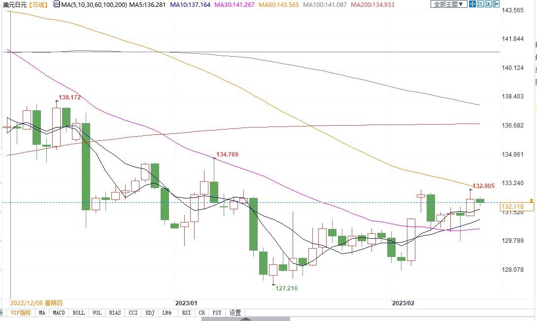 北京时间2月14日10:55, 美元兑日元 报132.111/119