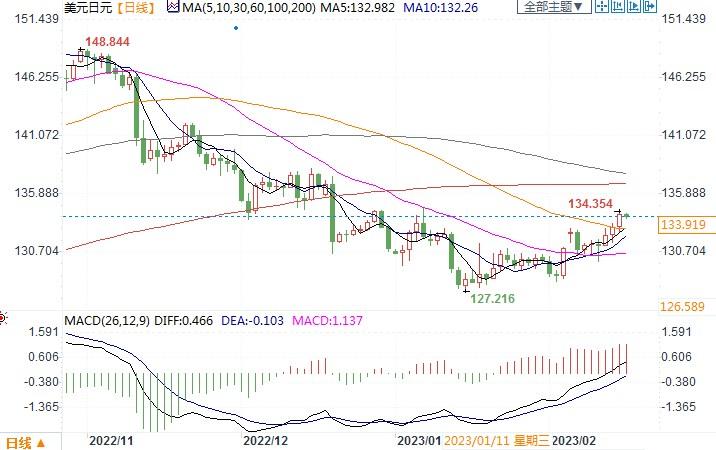 北京时间2月16日14:33 美元兑日元 报 133.913/923