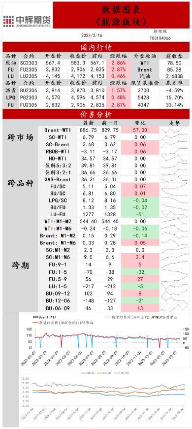 消息面:供需:利比亚国家石油公司表示,将会把石油产量提高至200万桶/日;IEA月报称,中国将占到23年全球石油需求增幅的一半,下半年有可能会出现供应短缺情况;EIA最新库存数据显示,截止2月10日当周,美国原油库存增加1630万桶,为2021年6月以来最高记录。能源:山东烟台港新增一座30万吨原油码头,烟台港将拥有2座30万吨原油码头,此外烟台港还有2座10万吨原油码头,350万立方罐区,1300公里输油管道;我国最大的液化天然气(LNG)储备基地—中海油盐城“绿能港”吊装顺利完成。