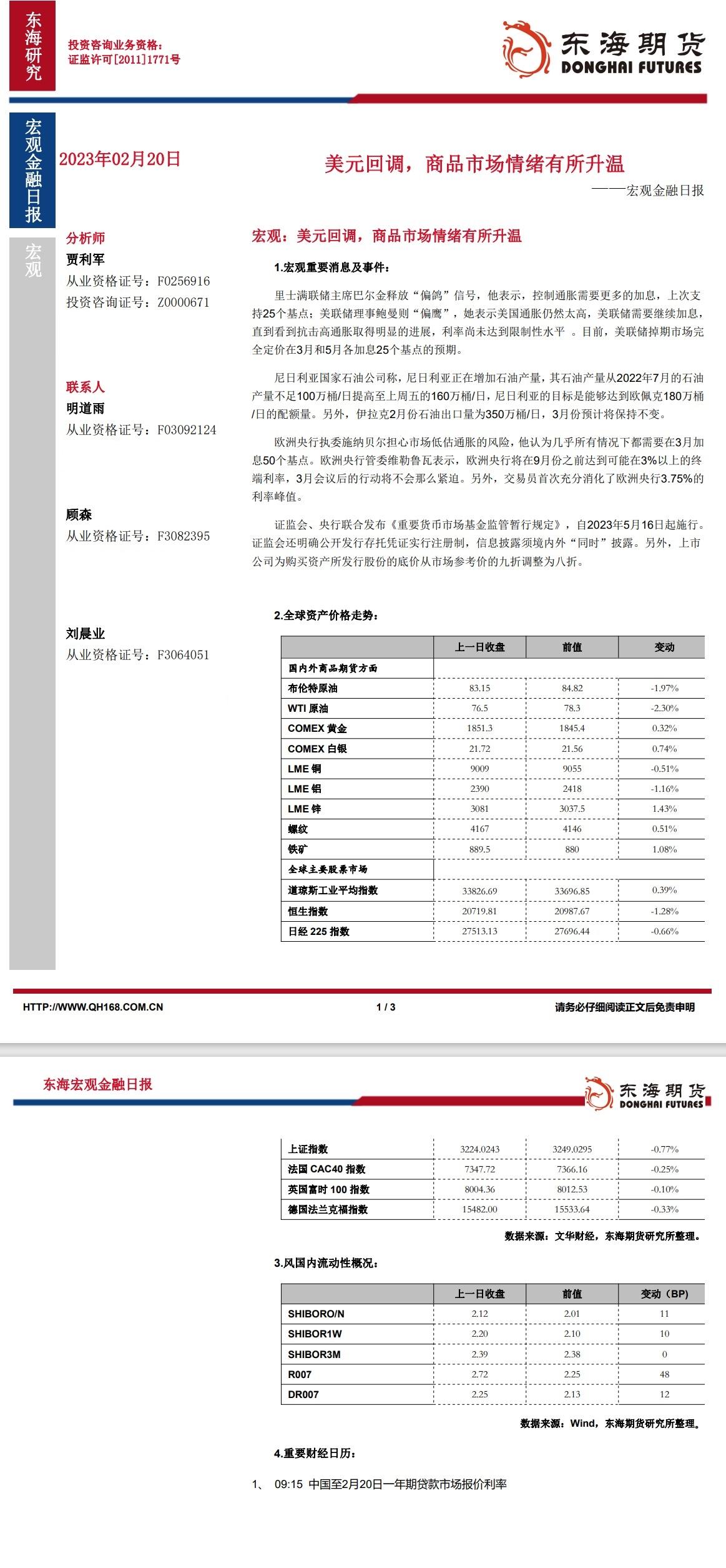 标题:【东海期货2月20日宏观金融日报】:美元回调,商品市场情绪有所升温