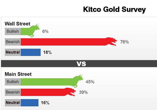 上周,17位华尔街分析师参与了Kitco News黄金调查。在参与者中,有13位分析师(76%)看空金价。 与此同时,只有1位分析师(6%)看好未来一周黄金的走势,3位分析师(18%)认为黄金将横盘震荡。