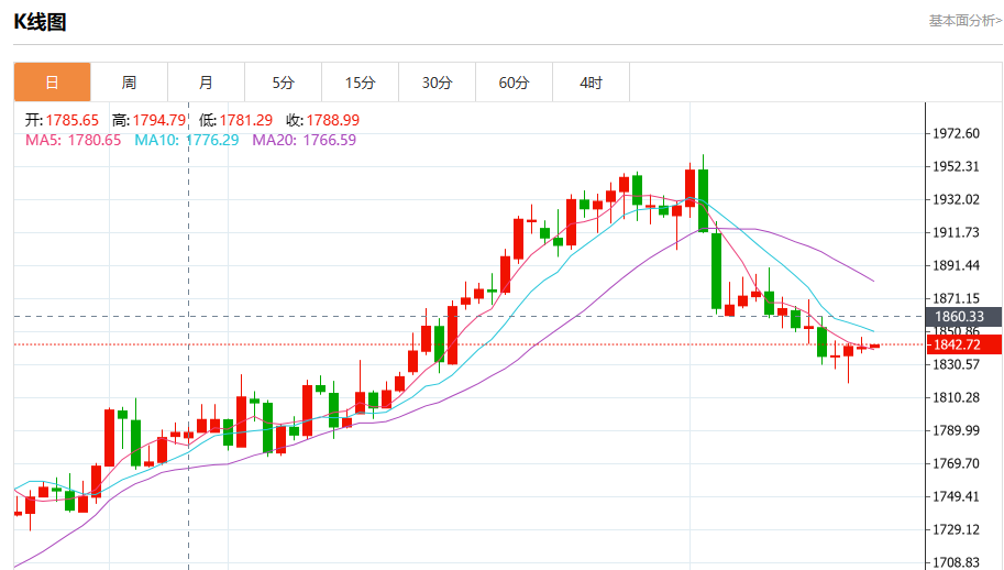 周一下跌,从上周五创下的六周高点略微走低,此前出炉的多项经济数据增强了市场对美联储将继续收紧货币政策的预期;金价周一收盘几无变动,投资者关注即将公布的美国经济数据,以寻找关于美联储加息路径的线索。
