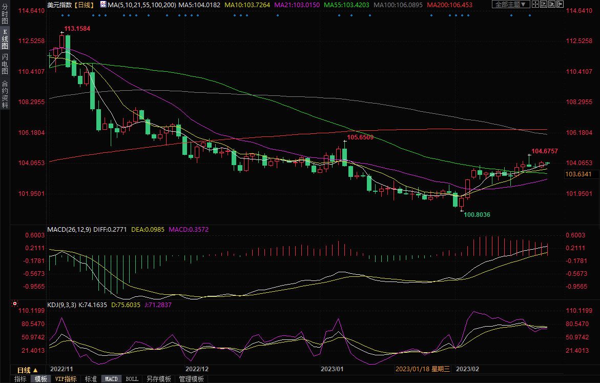 周三(2月22日)亚洲时段, 美元指数 窄幅震荡,目前交投于104.10附近,守住了隔夜涨幅,接近上周创下的近六周高点。受助于强劲的美国经济数据, 美元指数 周二上涨0.3%,收报104.20附近。
