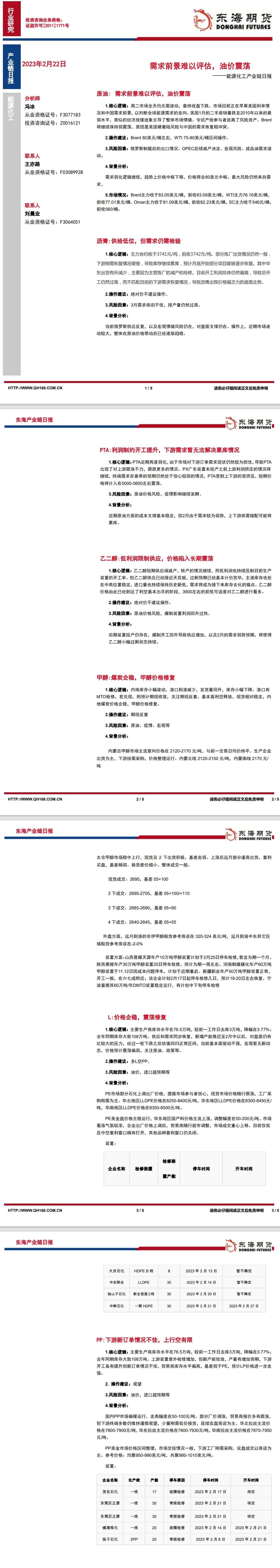 标题:【东海期货2月22日产业链日报】能化篇:需求前景难以评估,油价震荡