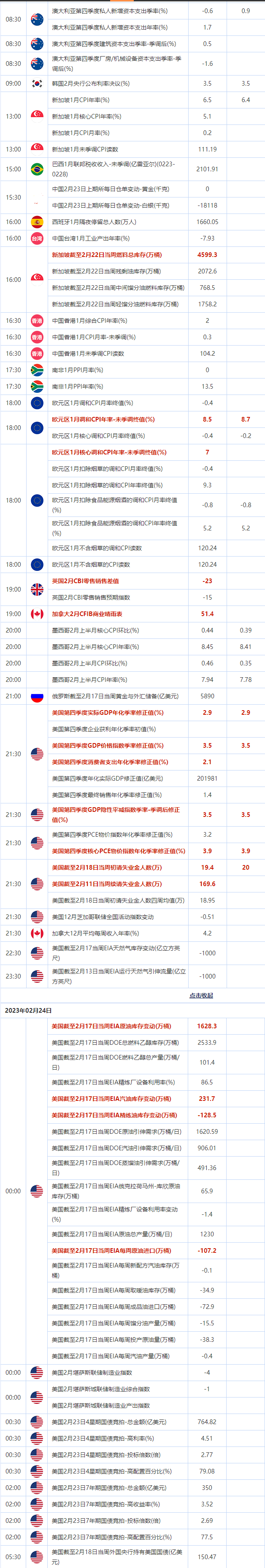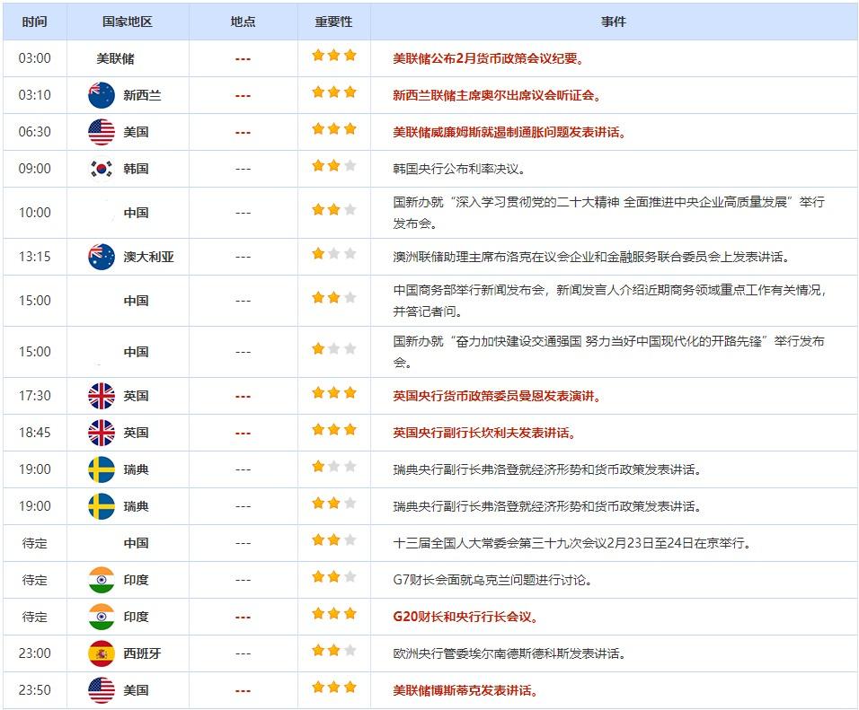 2月23日重点数据和大事件前瞻