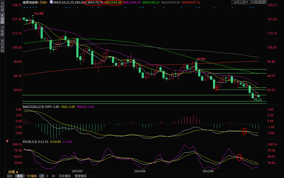 在失守76.23前,仍需提防多头的反扑,初步阻力在5日均线78.78附近,若能收复该位置,则削弱短线看空信号;进一步阻力在80整数关口附近,然后是9月8日低点81.17附近阻力,10日均线81.67附近阻力也可以予以留意,若能回升至该位置上方,则增加短线看涨信号。