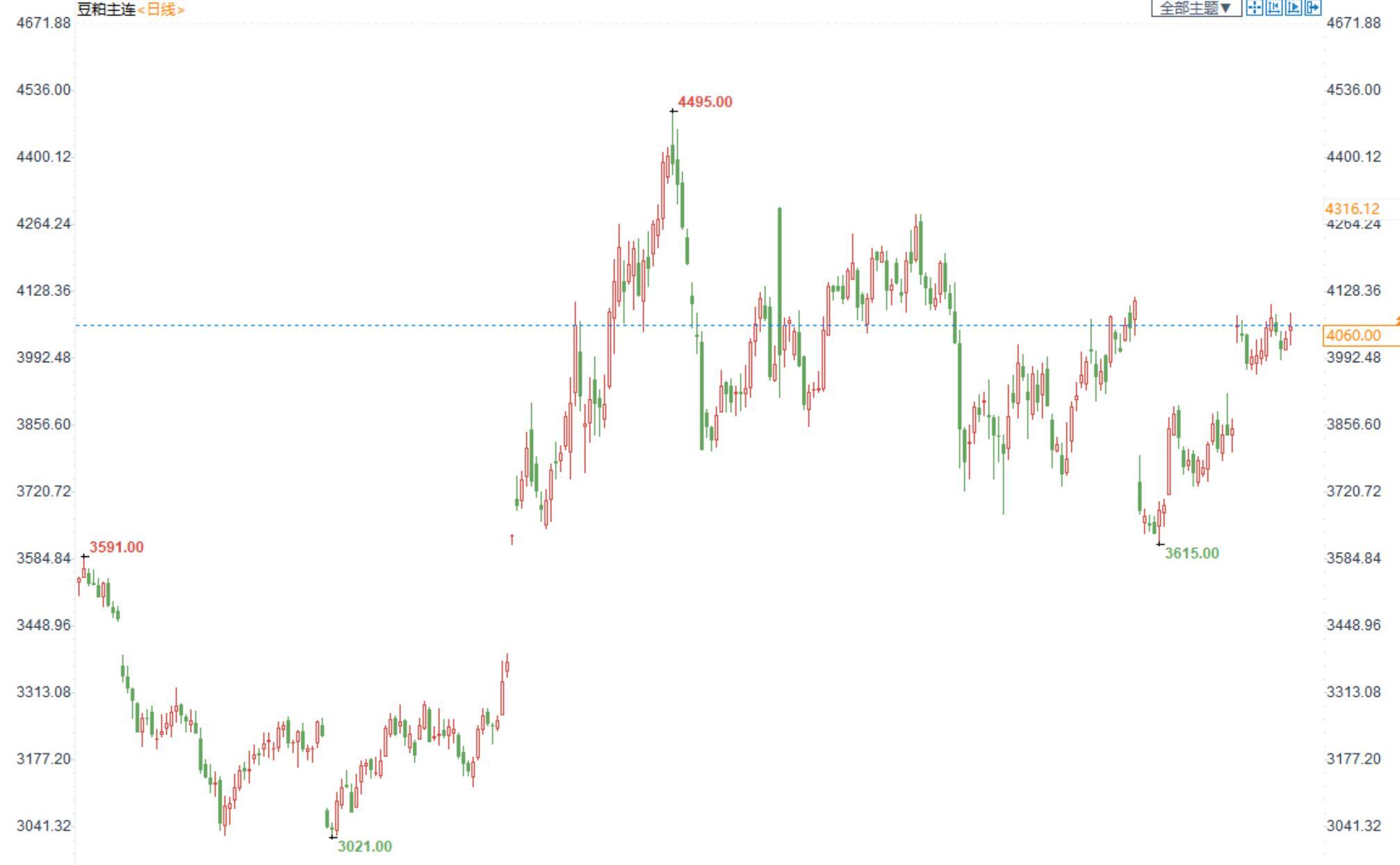 豆粕2301合约日内涨0.59%,收盘价4060元/吨。