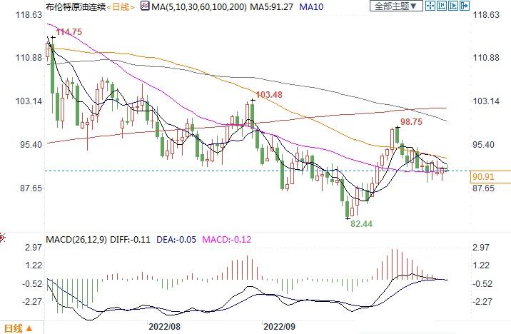北京时间10月24日14:30, 布伦特原油 连续 报 90.91美元/桶