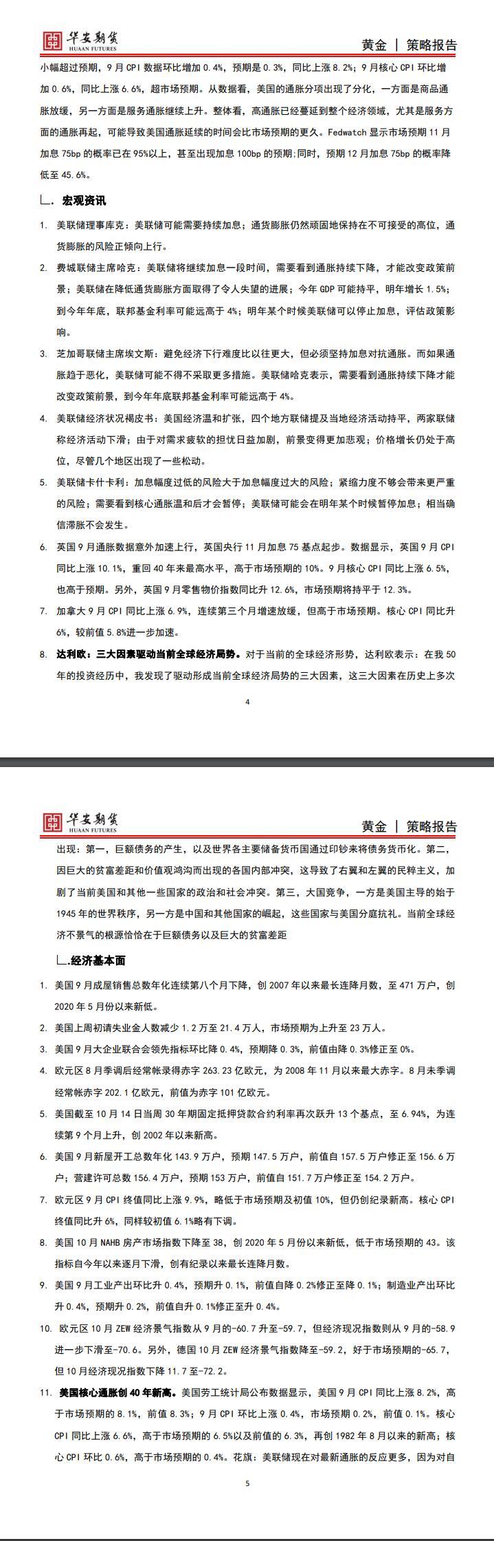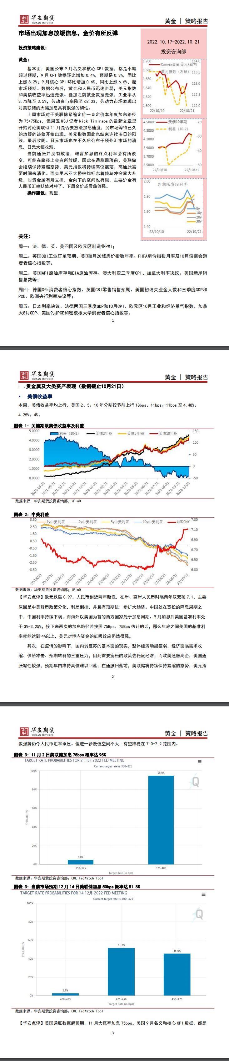 标题:【华安期货】贵金属10月23日周报:市场出现加息放缓信息,金价有所反弹